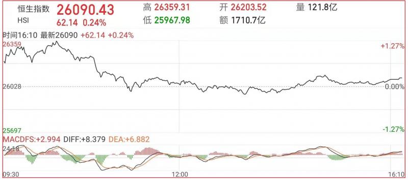 1.恒指早市先高开175点至26203点,其后曾略作整固而轻回至26151点。惟在腾讯(700)、美团点评(3690)及阿里巴巴(9988)等主要恒指成份股做好带动下,市势卒再进一步推上。港股高开后涨幅缩窄,截至收盘,恒生指数涨0.24%,报26090.43点,国企指数涨0.75%,红筹指数涨0.89%;