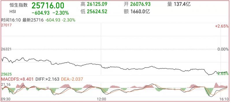 1.恒指今昨早先低开244点至26075点,其后曾稍后抽至26125点。但由于买盘退缩,加上沽压亦阵阵涌现,故整个大市卒开始进一步回落。随后跌幅扩大。截至收盘,恒生指数跌2.3%,报25716点;国企指数跌2.81%,红筹指数涨0.17%;