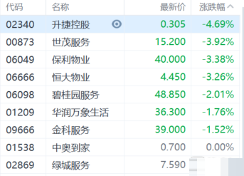 物管股低开,世茂服务(0873.HK)跌约4%,保利物业、恒大物业跌逾3%。