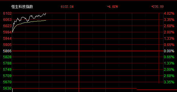 港股高开高走,恒指涨2.3%上扬550点,公司涨2.7%,恒生科技指数涨超4%。大型科技股全线走高,网易涨近10%,快手涨超7%。