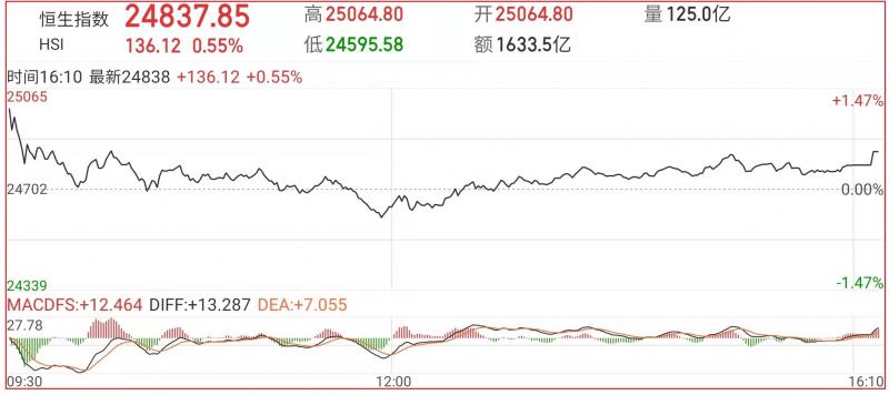 1.上周五恒指早市先高开363点至25064点,即此刻大市已进一步上破20天线(约在24718点左近),但由于高台买盘却步,加上短线回吐沽压渐增,故整个大市卒开始反复,午后恒指走高,截至收盘,恒生指数涨0.55%,报24837.85点;国企指数涨0.72%,红筹指数跌0.91%;