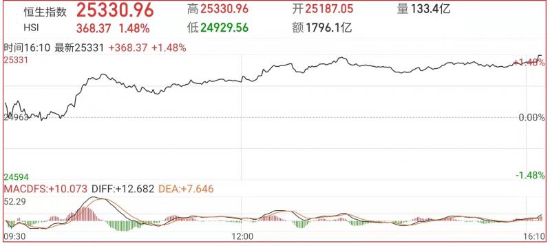 1.上周五恒指早市先高开225点至25187点,但由于买盘保守,故市势便渐呈反复,恒指更一度轻微倒跌33点至24929点,惟幸沽压不大,而维稳买盘亦渐现,截至收盘,恒生指数涨1.48%,报25330.96点,国企指数涨1.32%,红筹指数跌0.58%;