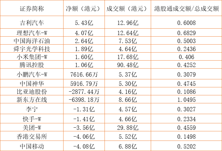亚汇网6月28日港股通数据统计显示:吉利汽车净买入额居首,达5.43亿港元,中国移动(600941)净卖出额居第一位。