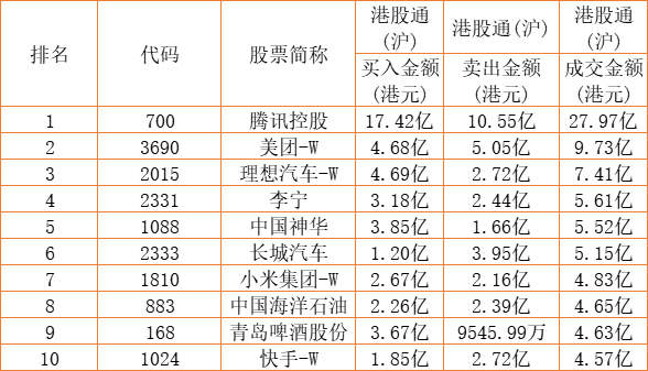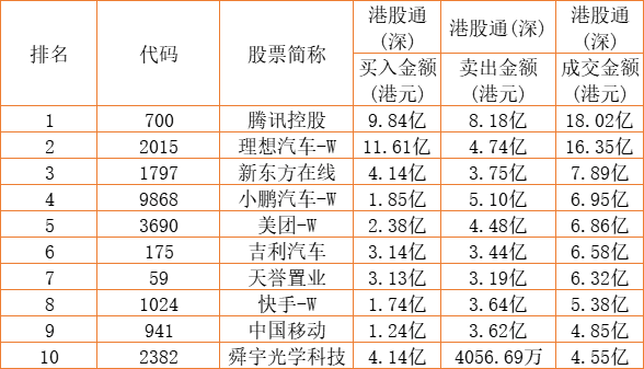 亚汇网实时数据统计:截至6月29日收盘,腾讯控股、美团-W、理想汽车-W位居港股通(沪)成交前三,腾讯控股、理想汽车-W、新东方在线位居港股通(深)成交前三。