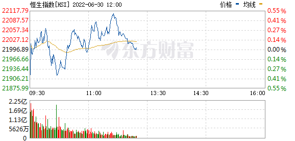 6月30日午间,港股行情冲高回落,香港恒生指数涨0.03%,报22002.58点,恒生科技指数跌0.12%,报4931.19点。板块方面,建筑产品、医疗保健技术、无人驾驶、高校、K12教育等板块涨幅居前;软件、个人用品、工业集团企业、数字经济、金属镍、智能医疗等板块跌幅居前。
