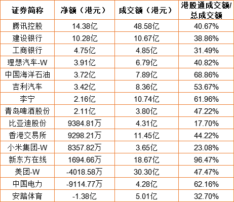 亚汇网6月30日港股通数据统计显示:腾讯控股净买入额居首,达14.38亿港元,安踏体育净卖出额居第一位。