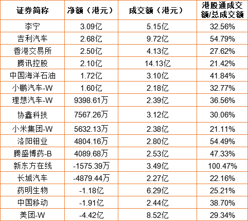 亚汇网7月8日港股通数据统计显示:李宁净买入额居首,达3.09亿港元,美团-W净卖出额居第一位。