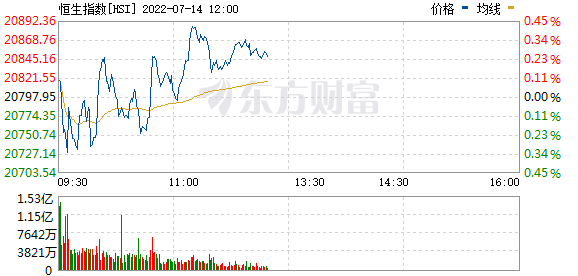今日早盘,恒指走势反复,截至午盘,恒指涨0.24%,报20848.28点,药明生物(80 4.25 5.61%)领涨蓝筹。