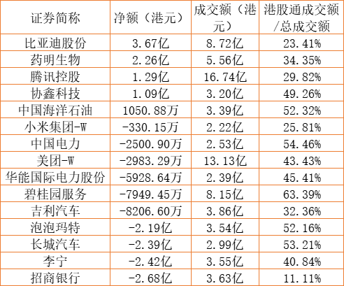 亚汇网7月14日港股通数据统计显示:比亚迪(002594)股份净买入额居首,达3.67亿港元,招商银行净卖出额居第一位。(亚汇网编辑:陌尘)