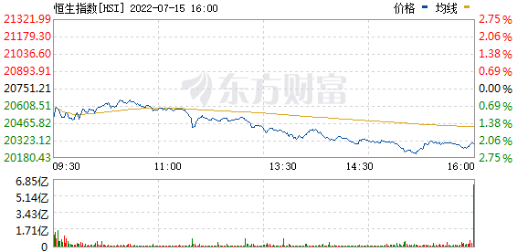 今日早盘,恒指大跌,银行、地产、科技、医药跌势明显,午后恒指跳水,截至收盘,恒指跌2.19%,报20297.12点,碧桂园(3.31 -0.31 -8.56%)大跌8.56%,领跌蓝筹。龙湖跌超6%。港股后市方面:港股上午收跌247点。午后延续跌势,再向下扩大跌幅至低见20215,最多跌535点。随后续在低位附近横行至收市。恒指连跌5日,累计跌幅超过1,500点,低见20215,创近月低位,更似逐步迈向20000关口。在欠缺方向下,暂时也未见有上升动力。因此,有机会失守20000关口,或再试低位。因为环球央行的大幅加息,利好银行息差。近日本地港元拆息也略见抽升。可以留意香港的本地银行,候低位时吸纳。更有个别股份息率稍高,有利于作中长线投资。当中包括(11)恒生银行(125.2 -3.50 -2.72%)、(2388)中银香港(27.5 -0.85 -3.00%)等。