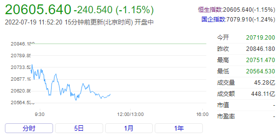 截至午间收盘,恒生指数(20587.48 -258.70 -1.24%)跌1.15%,报20605.64点;国企指数跌1.24%,红筹指数跌1.03%。恒生科技指数(4495.58 -78.82 -1.72%)跌1.64%,比亚迪(287.6 -6.20 -2.11%)电子(21.4 -1.55 -6.75%)跌6.54%,阿里跌2.98%,百度跌2.4%。
