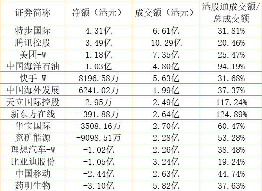 亚汇网7月22日港股通数据统计显示:特步国际净买入额居首,达4.31亿港元,药明生物净卖出额居第一位。(亚汇网编辑:陌尘)