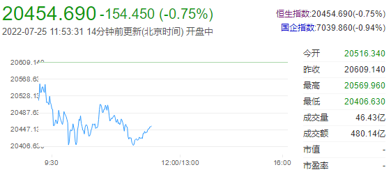 今日早盘,港股恒指低开低走,截至午盘,恒指跌0.75%,报20454.69点。恒生科技指数(4502.59 -95.05 -2.07%)大跌1.96%,新能源整车概念集体大跌,小鹏汽车跌7.2%,蔚来、理想跌超6%。
