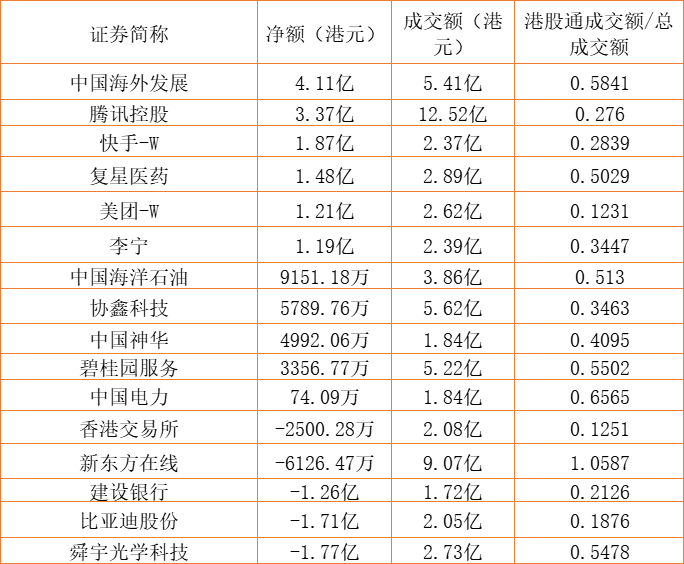 亚汇网7月26日港股通数据统计显示:中国海外发展净买入额居首,达4.11亿港元,舜宇光学科技净卖出额居第一位。(亚汇网编辑:陌尘)
