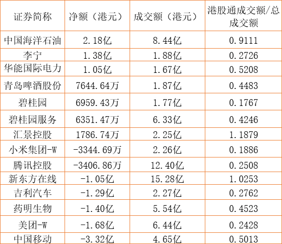 亚汇网7月28日港股通数据统计显示:中国海洋石油净买入额居首,达2.18亿港元,中国移动(600941)净卖出额居第一位。(亚汇网编辑:陌尘)