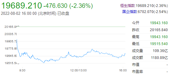 截至收盘,恒生指数(19658.42 -507.42 -2.52%)跌2.36%,报19689.21点,失守2万点大关;国企指数跌2.54%,红筹指数跌2.35%。恒生科技指数(4190.56 -133.47 -3.09%)跌超3%,哔哩哔哩跌6.54%,百度、携程集团跌超4%,腾讯跌1.54%,报295港元,创2019年1月以来最低收盘价。港股后市方面:港股上午收跌545点。午后略见收窄跌幅至大概跌400点左右。续在附近横行至收市。今日恒生科技指数的急挫,累跌接近5%,也反映出整体科技及新经济板块的股份较为弱势。受大股东抛售,再遇跌浪,(700)腾讯早上创出52周新低288元。而近日屡创低位的(9988)阿里巴巴再创月内低位86.10元。另有(3690)美团、(9618)京东、(1024)快手科技、(9626)哔哩哔哩等都齐造出月内低位。明日(9988)阿里巴巴公布业绩,要继续留意。