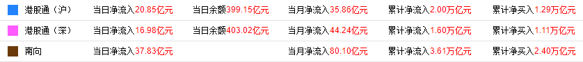 截至8月2日港股收盘,南向资金今日合计净流入37.83亿港元,其中,沪市港股通净流入20.85港元,深市港股通净流入16.98亿港元。