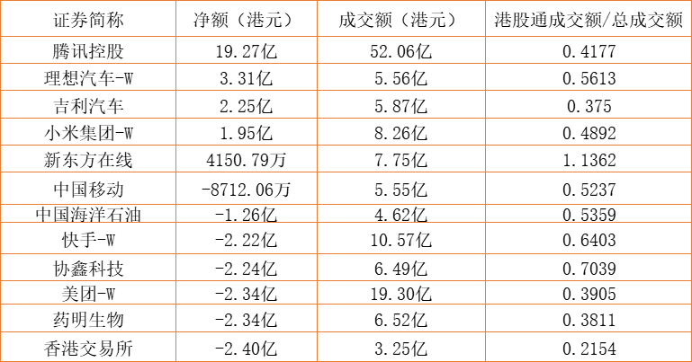 亚汇网8月2日港股通数据统计显示:腾讯控股净买入额居首,达19.27亿港元,香港交易所净卖出额居第一位。(亚汇网编辑:陌尘)