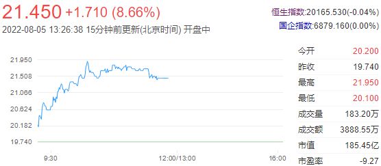 今日走势分析:和黄医药(00013)早盘高开高走,升幅达到10%。受到药企巨头赛诺菲战略投资信达生物(01801)事件带动,早盘多只创新药企冲高,公司重点合作伙伴包括信达生物、阿斯利康(AZN.US)、礼来(LLY.US)等知名药企。截至发稿,和黄医药涨10.18%,报21.75港元,成交额0.33亿港元。