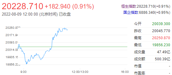截至午盘,恒指涨0.91%,报20228.71点,恒生科技指数(4358.85 23.31 0.54%)涨0.55%,小鹏、阿里、蔚来等涨超2%。