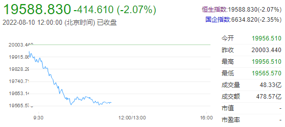 截至收盘,恒指跌2.07%,报19588.83点,药明生物(67.55 -6.95 -9.33%)大跌逾9%,领跌蓝筹,龙湖集团(23.2 -1.80 -7.20%)跌超7%。恒生科技指数(4161.6 -133.64 -3.11%)大跌3.11%,小鹏汽车跌7.5%,蔚来跌超6%,理想跌5.7%,快手跌5%,美团、京东跌超4%。