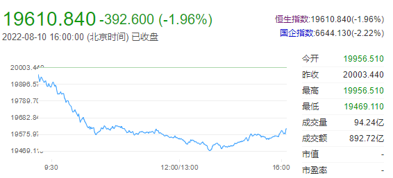 恒生指数跌1.96%或392.60点,报19610.84点,全日成交额892.72亿港元;国企指数跌2.22%,报6644.13点;恒生科技指数跌2.83%,报4173.7。港股后市展望:8月初将迎来低位布局港股的良机。虽然景气度上,新能源设备与贵金属、能源、有色等周期板块更具吸引力;但从弹性上看,消费板块以及消费互联网领域却更具优势。展望8月,需要兼顾景气确定性与估值弹性。具体来看,港股8月份的结构主线上将重点关注以下三条:第一,风电、光伏与新能源车电池设备等新能源高景气确定性板块,以及贵金属、能源、有色等为代表的拥有强金融属性的上游周期领域;第二,电讯业、公用事业等强防御属性板块;第三,线下活动消费领域、消费互联网领域等大消费领域所处的高弹性板块。