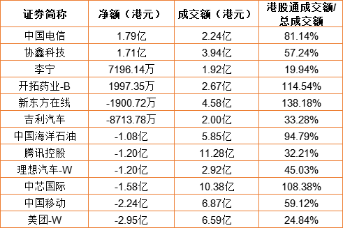 亚汇网8月15日港股通数据统计显示:中国电信(601728)净买入额居首,达1.79亿港元,美团-W净卖出额居第一位。(亚汇网编辑:陌尘)