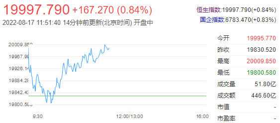 截至午间收盘,恒生指数涨0.84%,报6783.47点;国企指数涨0.83%,红筹指数涨0.65%。恒生科技指数(4255.65 34.62 0.82%)涨0.97%,网易涨2.03%,京东涨1.36%,小米涨1.2%。