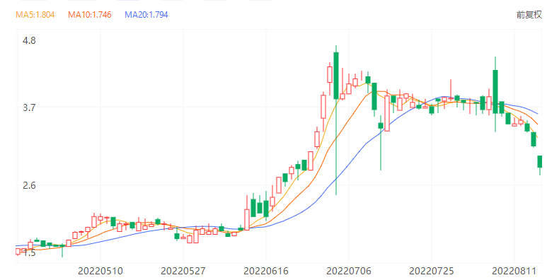 今日走势分析:世纪睿科(01450)早盘继续走低,一度触及2.78港元跌近13%。近日,公司主要股东Xiao Xin先从控股股东一致行动人中退出,随即大幅减持,其持有好仓占比由11.59%降至2.78%。自去年7月即Xiao Xin等一致行动人入主以来至今年7月初,期间世纪睿科股价暴涨19.4倍。截至发稿,世纪睿科跌9.09%,报2.90港元,成交额0.10亿港元。