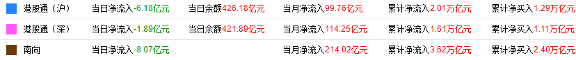 截至8月17日港股收盘,南向资金全日合计净流出24.05亿港元。其中,沪市港股通净流出14.88亿港元,深市港股通净流出9.17亿港元。