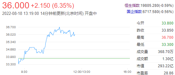 今日走势分析:上海复旦(01385)早盘涨超6%,盘中高见36.15港元创上市新高。截至发稿,涨6.5%,报36.05港元,成交额9072.58万港元。