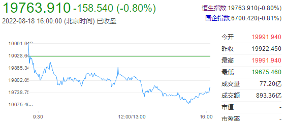 截至收盘,恒生指数(19763.91 -158.54 -0.80%)跌0.8%,报19763.91点;国企指数跌0.81%,红筹指数跌0.5%。恒生科技指数(4192.64 -46.26 -1.09%)跌1.09%,哔哩哔哩跌4.15%,百度跌3.39%,京东跌2.51%。港股后市展望:港股上午收跌124点。午后持续弱势,再扩大跌幅至低见19675,最多跌超过246点。续在低位附近横行至收市。恒指周内仍以跌势为主,唯继续可在20000附近徘徊或横行。在没有利好消息的支持、外围的动荡不稳、各地央行的持续加息,再加上经济数据的偏弱,也造就港股未有动力可向上抽升。唯不论是篮筹、科技、地产或新经济板块等,股价已靠近低位,市盈率亦是近年之低。因此再大幅急挫的机会也十分微。亦因此形成极度淡静的成交额,再缩减至不足900亿港元。相信情况会维持至下半年。