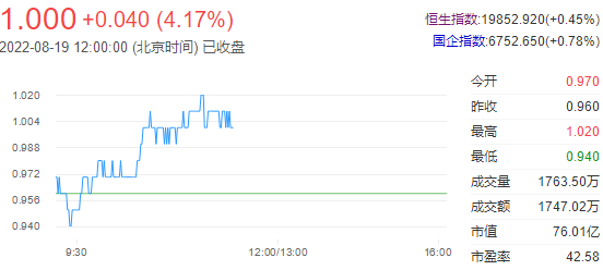 今日走势分析:中广核矿业(01164)早盘再涨超5%,月内累涨近20%。截至发稿,涨4.17%,报1港元,成交额1096.31万港元。