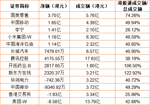 亚汇网8月22日港股通数据统计显示:国美零售净买入额居首,达3.70亿港元,美团-W净卖出额居第一位。(亚汇网编辑:陌尘)