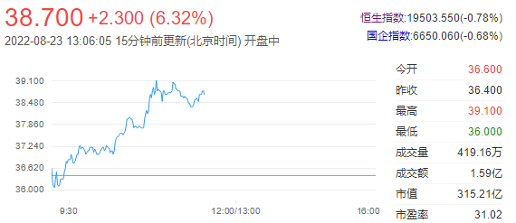 今日走势分析:上海复旦(01385)早盘继续冲高,一度触及39.10港元,刷新历史高点纪录,月内股价累升约40%。日前,光大、中泰等机构发布公司中期业绩点评报告,上调近三年归母净利润预测。截至发稿,上海复旦涨7.14%,报39.00港元,成交额1.42亿港元。