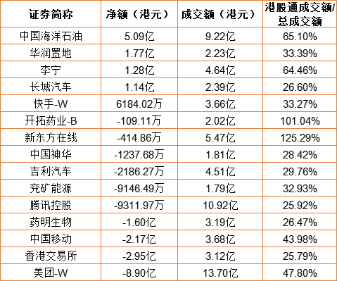 亚汇网8月23日港股通数据统计显示:中国海洋石油净买入额居首,达5.09亿港元,美团-W净卖出额居第一位。(亚汇网编辑:陌尘)