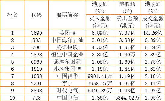 港股通(沪)买卖前十股(单位:港元):