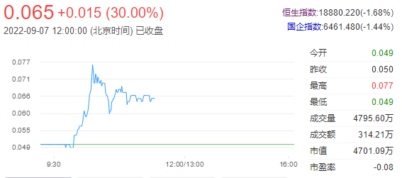 最近的财报数据显示,该股实现营业收入5.91亿港元,净利润-5.95亿港元,每股收益-0.82港元,毛利-2.96亿港元,市盈率-0.07倍。机构评级方面,目前暂无机构对该股做出“买入、持有、卖出”建议。可关注该股后续发展。