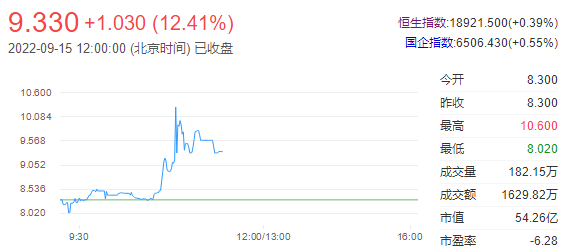 今日走势分析:瑞尔集团(06639)一度涨超11%,截至发稿,涨8.8%,报9.03港元,成交额922.69万港元。