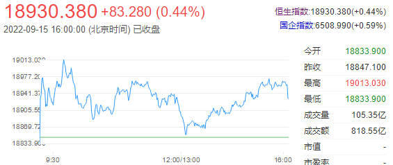9日15日下午,港股收盘,行情全天低开高走,两大指数收涨,香港恒生指数涨0.44%,恒生科技指数涨0.25%。市场呈跌多涨少态势。盘面上,地产代理、内房股、医疗外包、物业服务及管理等行业或概念板块走强。其中,内房股强势领涨,碧桂园涨近9%领涨蓝筹,富力地产、龙光集团涨超8%,旭辉控股集团、时代中国控股等跟涨。电力股、教育股、汽车、航运港口、光伏太阳能股等行业或概念板块走弱。其中,光伏及电力股走软,新特能源跌超8%,福莱特玻璃跌超7%,协鑫新能源跌超6%。新能源汽车股普跌,理想汽车跌超2%,小鹏汽车、蔚来跌超1%。科技股涨跌不一,携程集团涨2.19%,中芯国际、进山入间、京东集团、阿里巴巴涨超1%,腾讯控股涨0.13%,商汤跌2.35%,舜宇光学科技跌0.95%,百度集团跌0.7%。港股后市展望:国金证券赵伟团队认为,当下港股估值已具有较高性价比,长期配置价值正逐步显现;但短期,海外流动性环境的收紧仍将延续,港股或仍会受到一定程度扰动。目前,恒生指数市盈率正处于估值的历史底部。而高达3.72%的高股息率优势也在进一步显现。向后看,短期海外流动性环境收紧下,外围市场仍会对港股造成冲击;但港股盈利预期有望下半年见底回升,并驱动其后续反转。