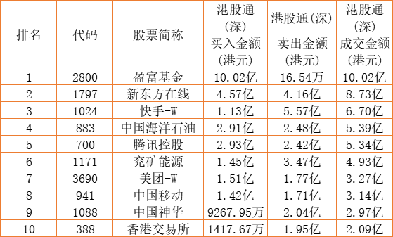 亚汇网实时数据统计:截至9月16日收盘,腾讯控股、快手-W、美团-W位居港股通(沪)成交前三,盈富基金、新东方在线、快手-W位居股通(深)成交前三。