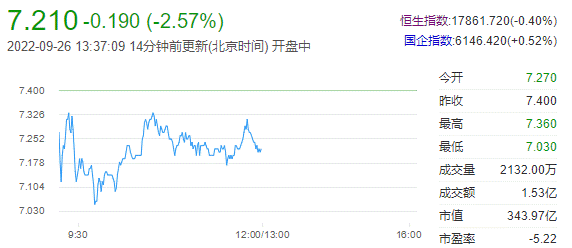今日走势分析:中远海能(7.22 -0.18 -2.43%)(01138)昨日冲高回落收跌逾4%,今日午后再跌超5%。截至发稿,跌5.61%,报7.41港元,成交额1.77亿港元。