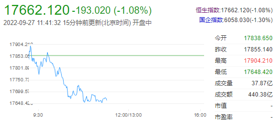 恒指早盘收跌1.06%,报17665.85点;恒生科技指数跌1.70%,报3585.30点;航空公司板块走高,生物科技、汽车板块走低;协鑫新能源大涨近27%。