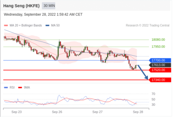 在 17700.00 之下,看跌,目标价位为 17520.00 ,然后为 17340.00 。