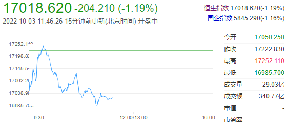 港股早上先低开172点后,曾有买盘支持,再反弹倒升29点,高见17252。唯弱势持续,加上极度淡静。股市回落再倒跌,更失守17000关口,创出新低16985,最多跌237点,并创自2009年5月中旬后最低。续在附近徘徊至收市。恒指上周五为9月份的最后一日,反弹倒升56点收市。但以全星期累计仍跌超过710点,更屡创新低。全月累跌超过2731点,跌幅亦超越15.86%。恒生科技指数上日亦创出纪录新低3385,全星期累跌139点。但月内累计也跌823点,跌幅更超过23.87%。日平均成交额也是维持在千亿港元以下,仅974亿元。周内A股市场假期,相信更见淡静。