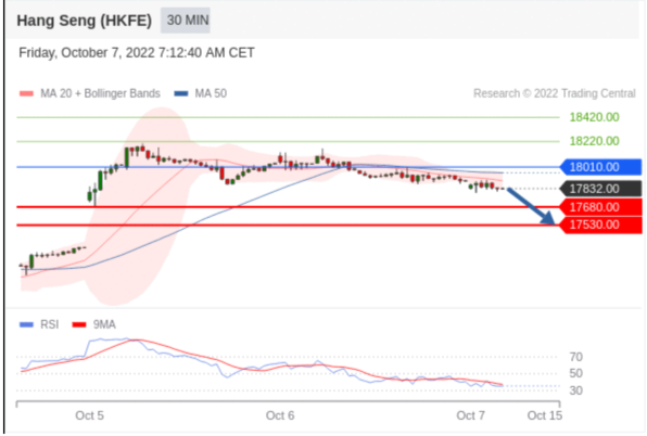 交易策略: 在 18010.00 之下,看跌,目标价位为 17680.00 ,然后为 17530.00 。