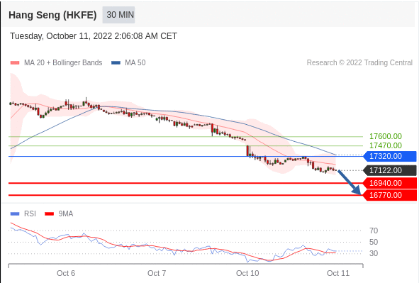 交易策略: 在 17320.00 之下,看跌,目标价位为 16940.00 ,然后为 16770.00 。