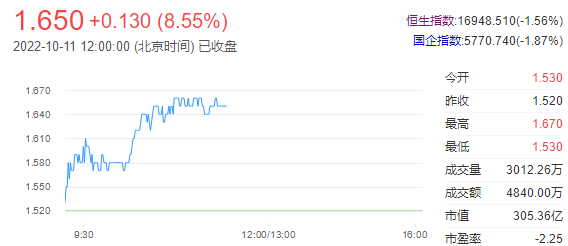 今日走势分析:电力股今日涨幅居前,截至发稿,大唐发电(00991)涨8.55%,报1.65港元;华电国际(01071)涨6.88%,报2.95港元;华能国际(00902)涨5.51%,报3.64港元;华润电力(00836)涨5.06%,报12.88港元。