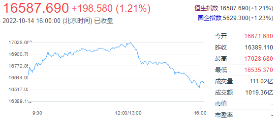 10月14日下午,港股收盘,两大指数午后冲高回落,香港恒生指数收涨1.21%,盘中一度站上17000点位,恒生科技指数收涨1.55%,盘中一度涨超5%。市场呈涨多跌少态势。港股后市展望:国信证券认为,未来1-2个月中,人民币汇率的贬值压力减小,港股下行压力将会得到明显的释放,结合Q4已经是中国经济周期收缩的尾声,而互联网子板块的ROE已经改善,以及地产将会受益于政策端的改善,加之产业资本与南向资金的持续增持,港股底部有望得到确认。