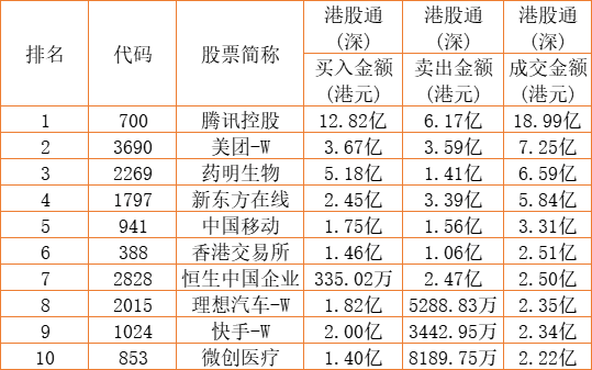 亚汇网实时数据统计:截至10月14日收盘,腾讯控股、药明生物、美团-W位居港股通(沪)成交前三,腾讯控股、美团-W、药明生物位居股通(深)成交前三。